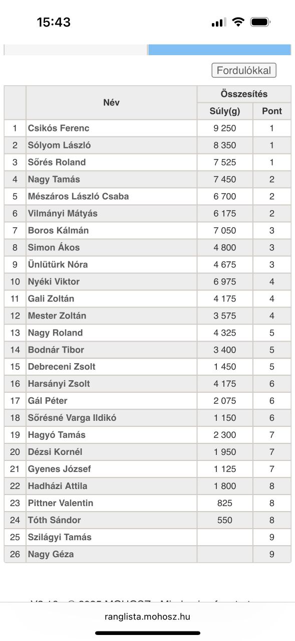 Feeder kategóriában Vilmányi Mátyás a 6. helyet szerezte meg.